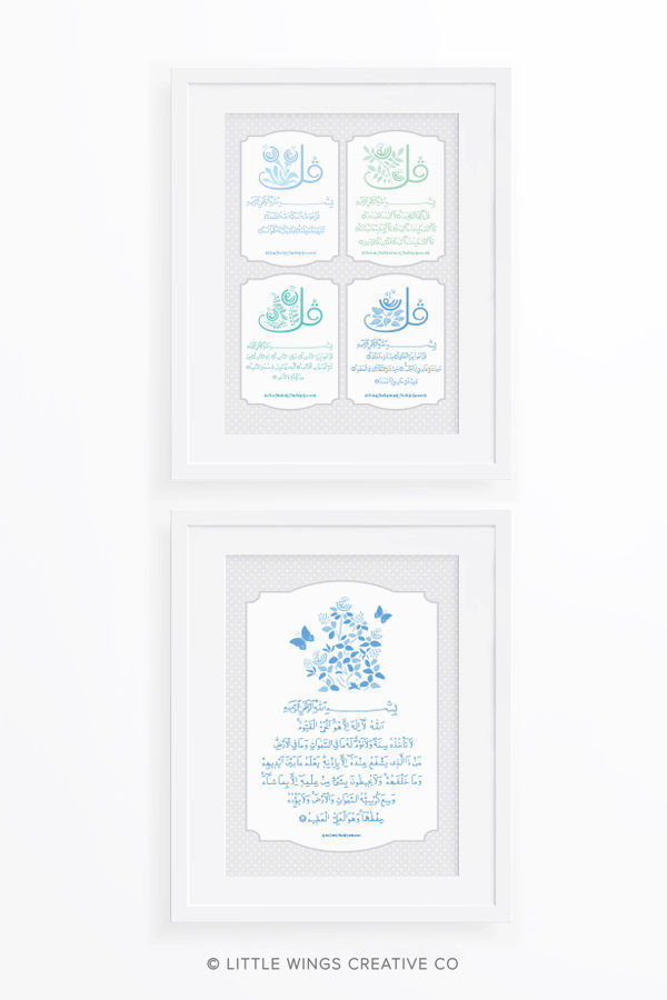 4 Quls + Ayat Al Kursi Botanical Islamic Art Prints