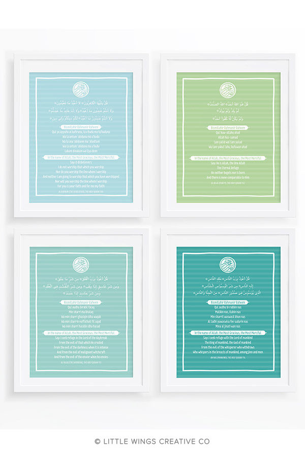 The 4 Quls: Surahs Kafirun, Iklas, Falaq and Nas.