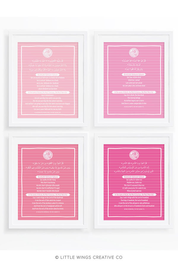 The 4 Quls (Surahs Kafirun, Iklas, Falaq and Nas) are a wonderful Islamic reminder to have in the home.